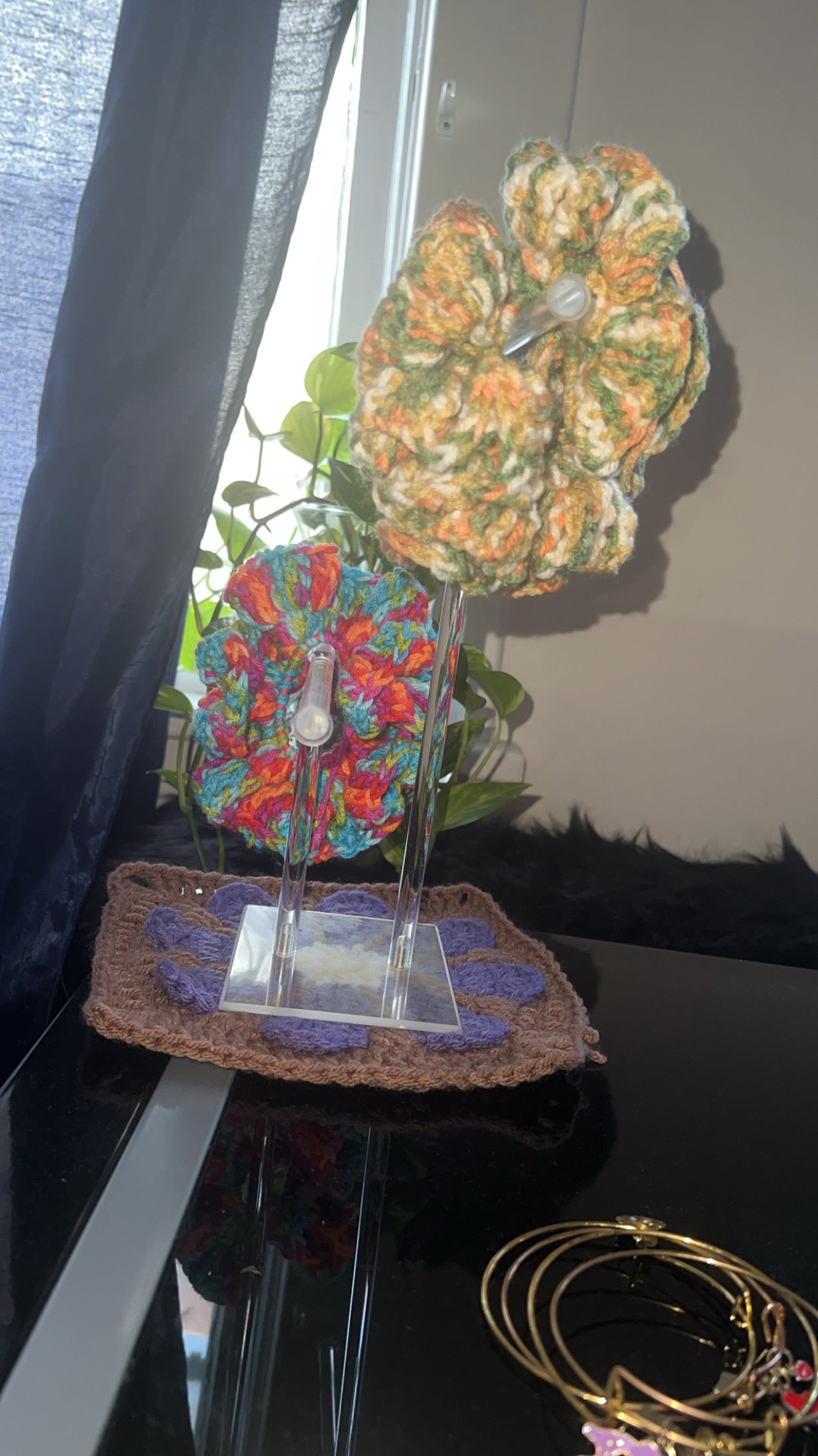 Crocheted Scrunchies with great stretch for ponytails or to give your hair extra slayage !